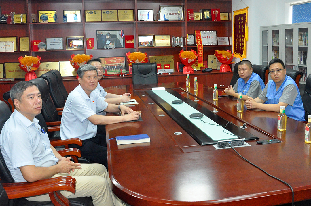 在仪式正式开始前,天津安达物流总经理郑玉强于二楼会议室热情接待了冒雨前来的天津卷烟厂仓储部杨部长及常主管一行。郑玉强总经理现场展示了车辆智能调度系统,该系统能够实现运输全程数字化管理,有效提升物流效率与透明度;同时,他还介绍了安达物流的整体经营情况,回顾了双方多年来合作的精彩历程。双方就新能源车辆运营管理、绿色物流体系建设等议题展开深入交流。杨部长对安达物流在天津卷烟厂成品烟公路运输服务中付出的努力与取得的成果给予充分肯定。