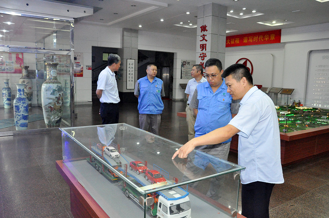 仪式结束后,郑玉强总经理带领杨部长一行实地考察了为新能源车队配套建设的智能充电站和奔驰立体仓库。在智能充电站,郑玉强介绍了高效便捷的充电管理系统;在奔驰立体仓库,他详细讲解了立体库智能出入库管理流程,展现了安达物流在仓储智能化方面的实力。随后,杨部长一行参观了det365手机版产业文化展厅。展厅内,历史照片、实物展品与数字沙盘相结合,全方位展示了det365手机版的发展历程、企业文化,以及安达物流在绿色转型方面的战略布局与创新实践,给参观嘉宾留下了深刻印象。